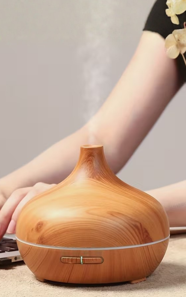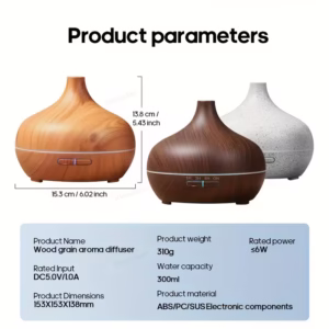 Wood Grain Aroma Diffuser 300ml USB-powered, 3 Styles (Dark/Light Wood, Marble), 7-Color Mood Light & Timer, Simple button operation Without Remote Control, Soundwave technology Quiet, Auto Shut-Off When Dry, Essential Oil Humidifier
